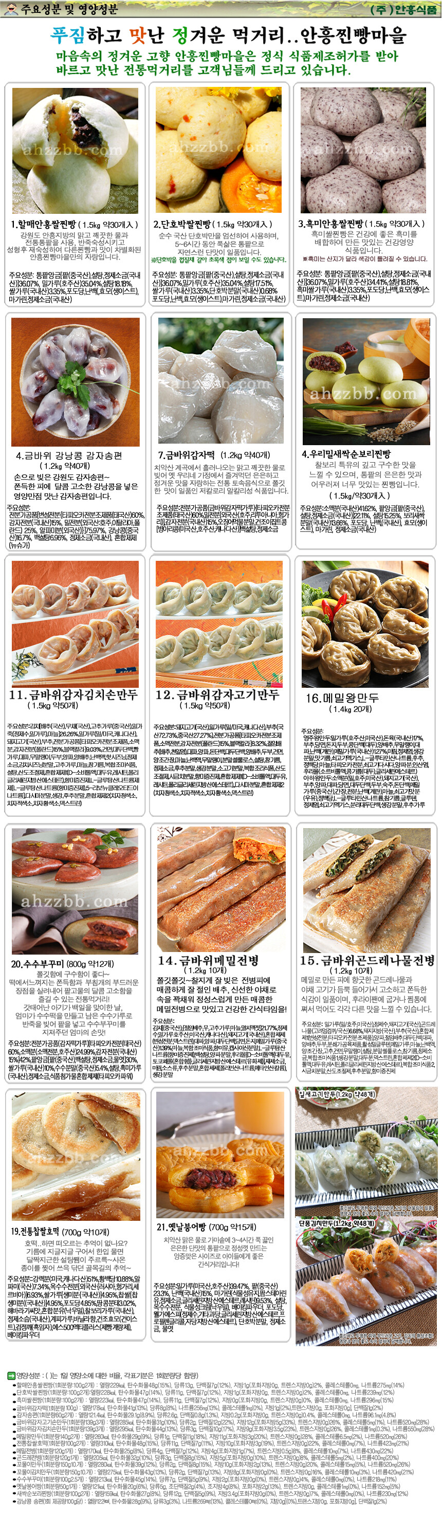 회사명 : 안흥찐빵마을 | 사업자등록번호 : 497-64-00657 [사업자정보확인] | 주소 : 강원도 원주시 모란1길 86