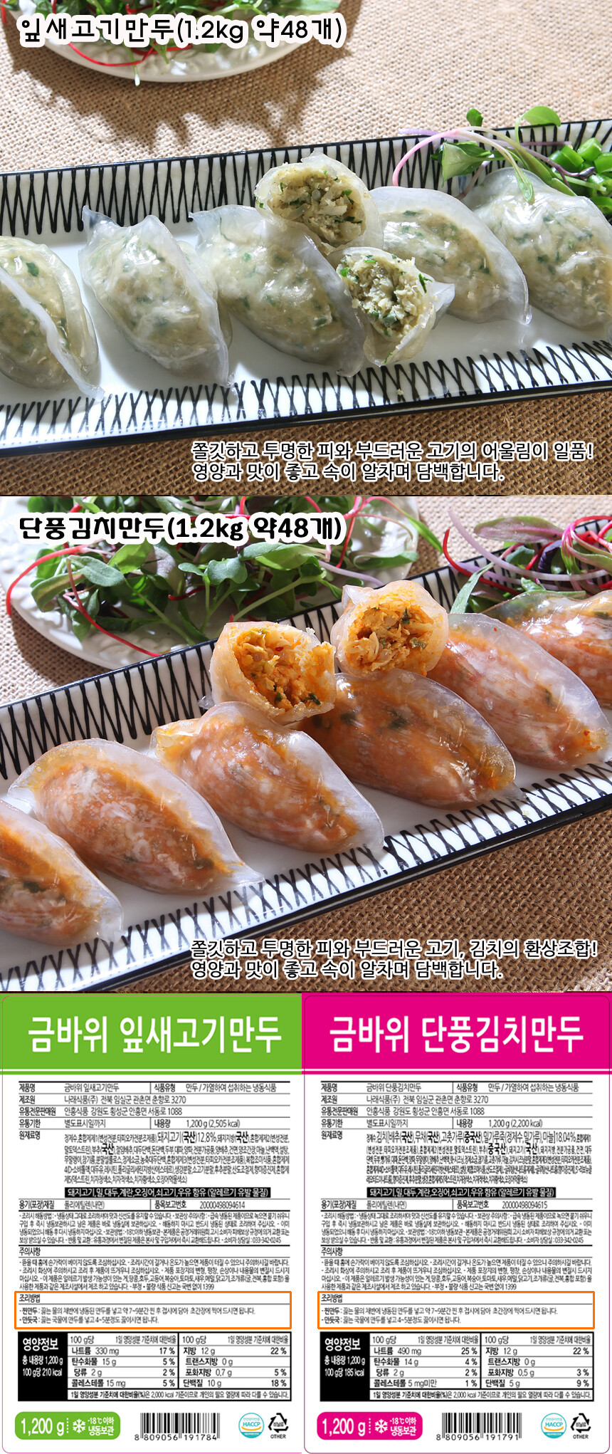 제조연월일, 유통기한 또는 품질유지기한 상시제조식품/제조일로부터 냉동(-18도 이하)보관으로 12개월